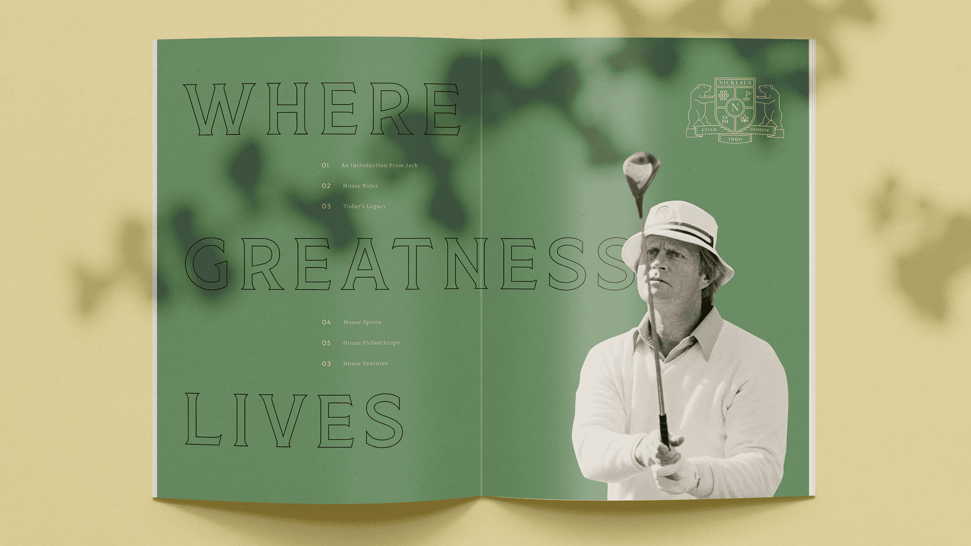 For Sean Metcalf, founder of House Metcalf, golf has always been personal. His father was a PGA Professional who taught at a Jack Nicklaus academy in Orlando, Florida, which meant the game and the legacy of Jack Nicklaus were ever present from an early age. What started as childhood admiration eventually turned into a seat in Jack and Barbara Nicklaus’s living room in South Florida, helping shape what came next. At the time, the Nicklaus family was navigating a pivotal moment, exploring how to establish a new entity that could carry their legacy forward on their own terms. Sean worked alongside the team at Goods & Services to define a brand platform that could unify a broad and evolving portfolio, one that honored the weight of the Nicklaus name while opening the door to a new chapter beyond golf. Together, the team explored a wide range of directions across naming and identity, searching for something that felt both enduring and expansive. Several names were considered, with “House Nicklaus” and “Nicklaus Made” emerging as the clear front runners—each offering a distinct expression of family, craftsmanship, and legacy. Ultimately, and fortunately, Jack Nicklaus prevailed in his litigation with Nicklaus Companies, eliminating the need to launch a new brand platform. Still, the work stands as a thoughtful exploration of what the next chapter of one of golf’s most iconic names could have been. It was a project grounded in respect. For legacy, for family, and for the responsibility that comes with helping shape what one of the greatest figures in sport chooses to build next.